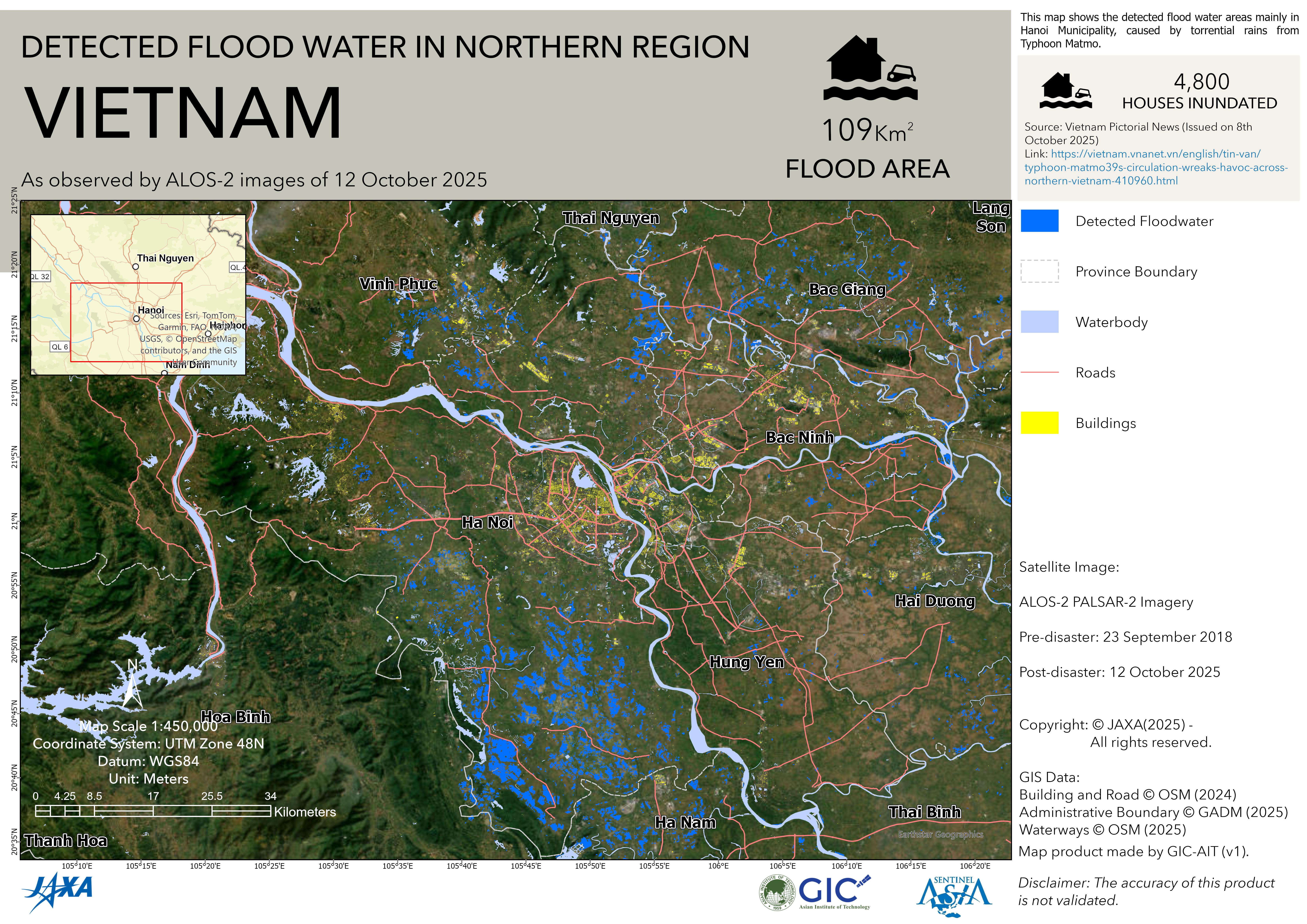 The circulation after Typhoon Matmo caused moderate to very heavy rain in the Northern region (Bắc Bộ) and a part of the North Central Coast (Bắc Trung Bộ), specifically Thanh Hóa. The prolonged heavy rain during the night of October 6–7, 2025, resulted in widespread flooding in many urban areas (especially Hanoi), deep inundation in some towns, along with the risk of river floods, flash floods, and landslides in mountainous areas.