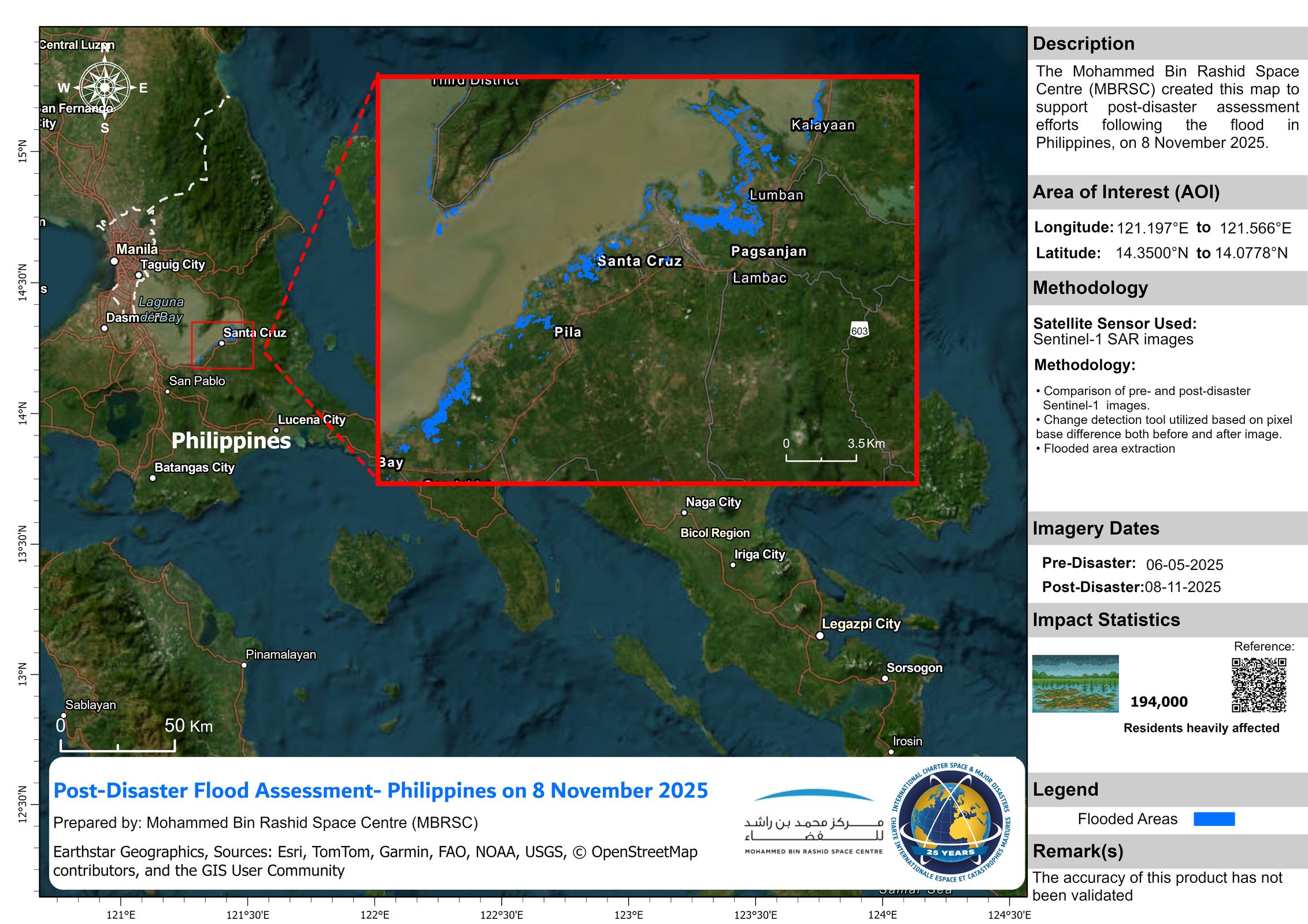 Post-Disaster Flood Assessment - Philippines As Observed by Sentinel-1 images on 08 November 2025