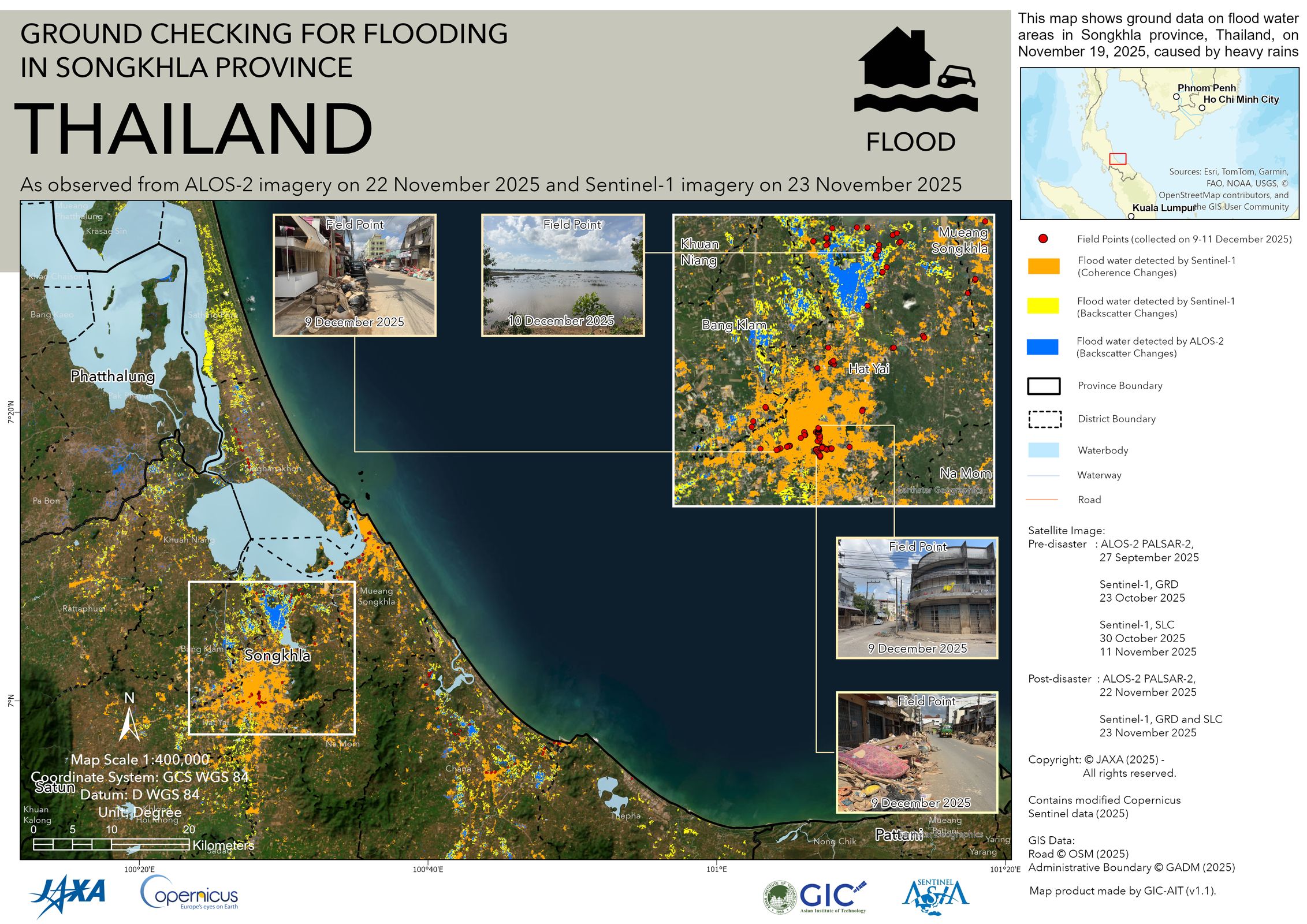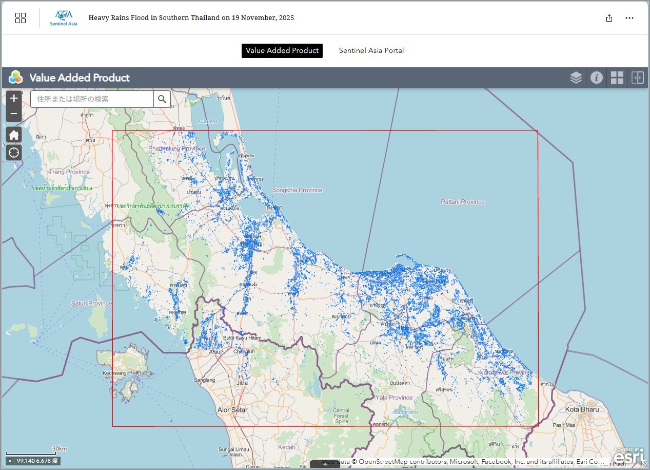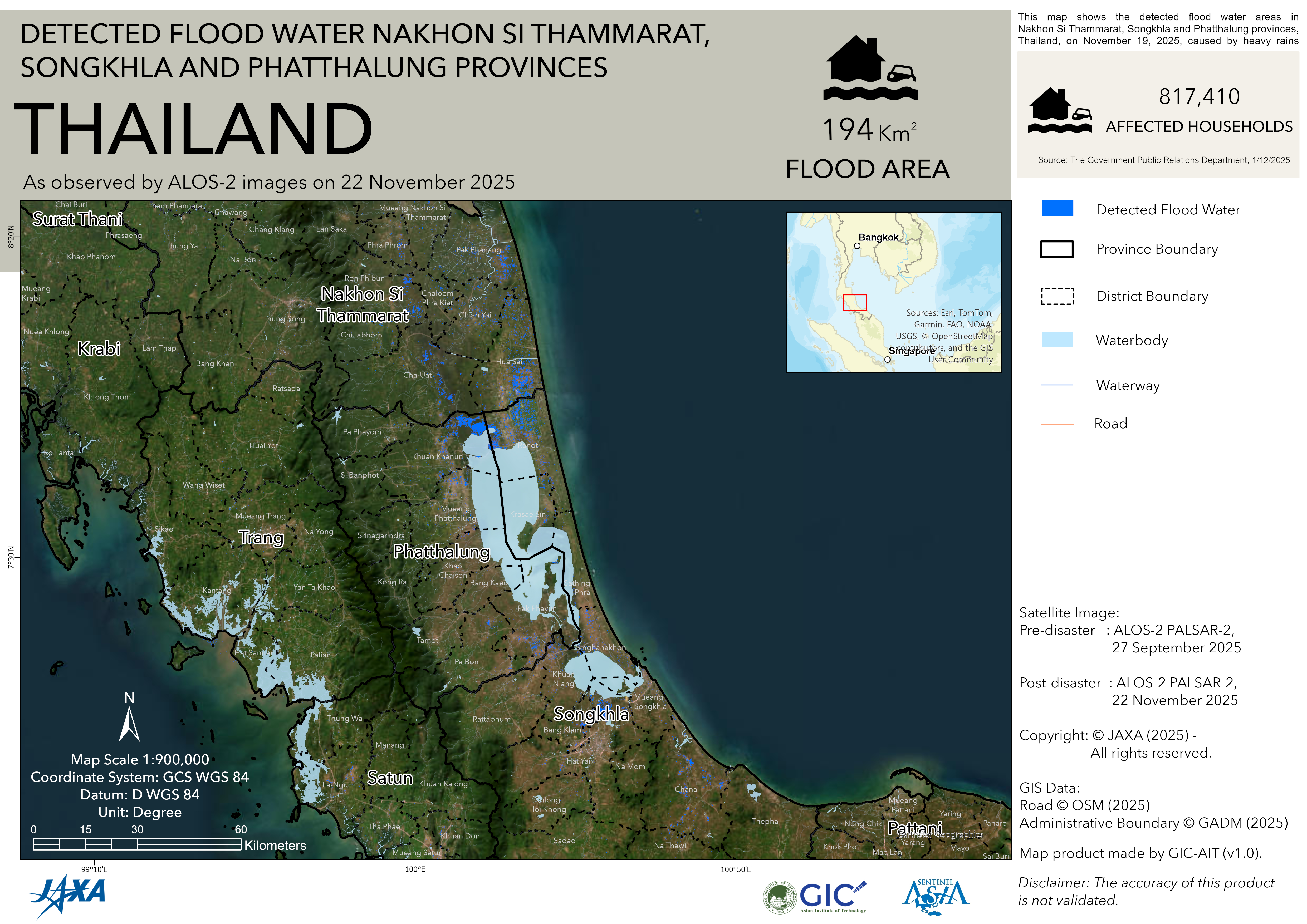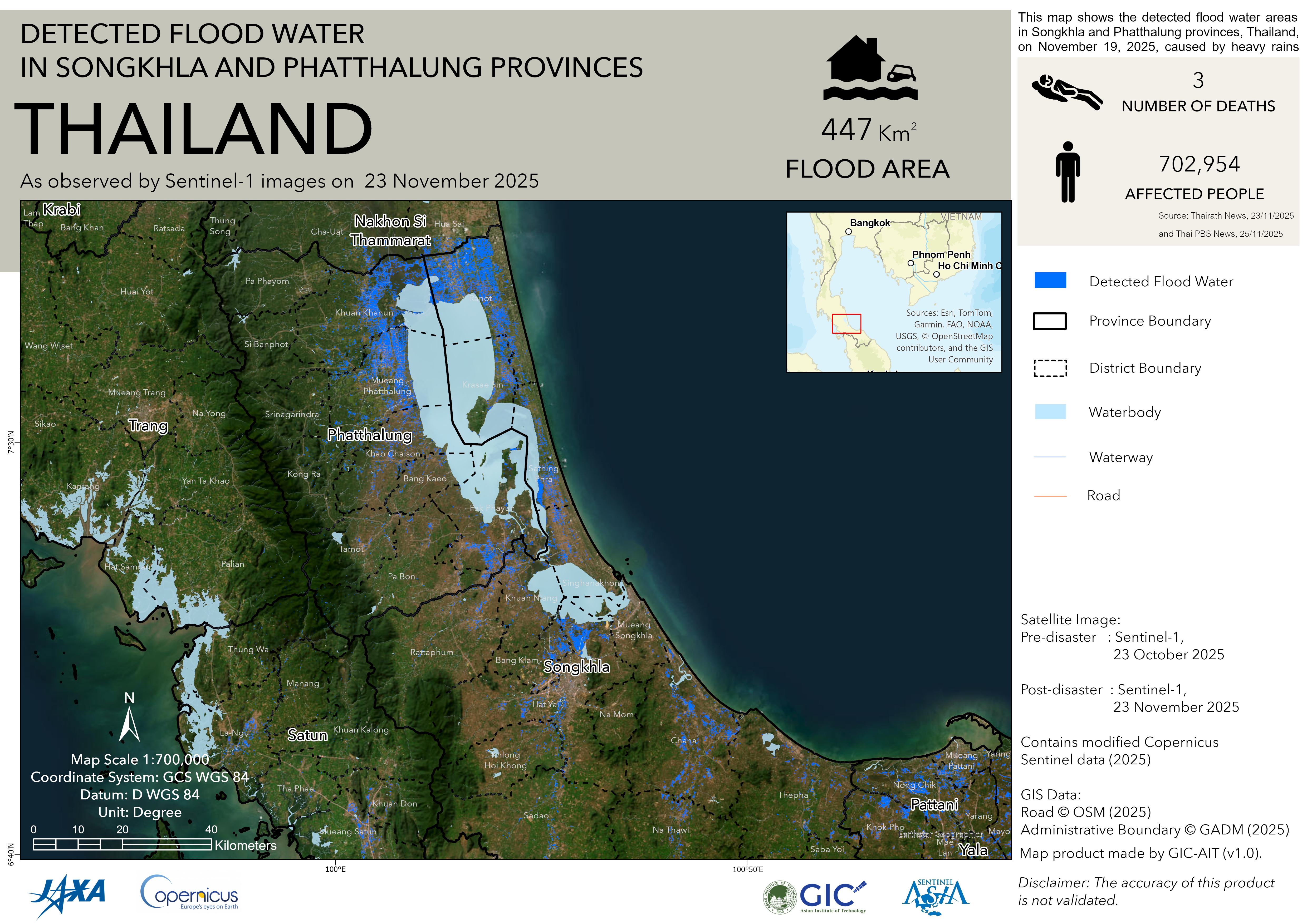DETECTED FLOOD WATER IN SONGKHLA AND PHATTHALUNG PROVINCES, THAILAND
