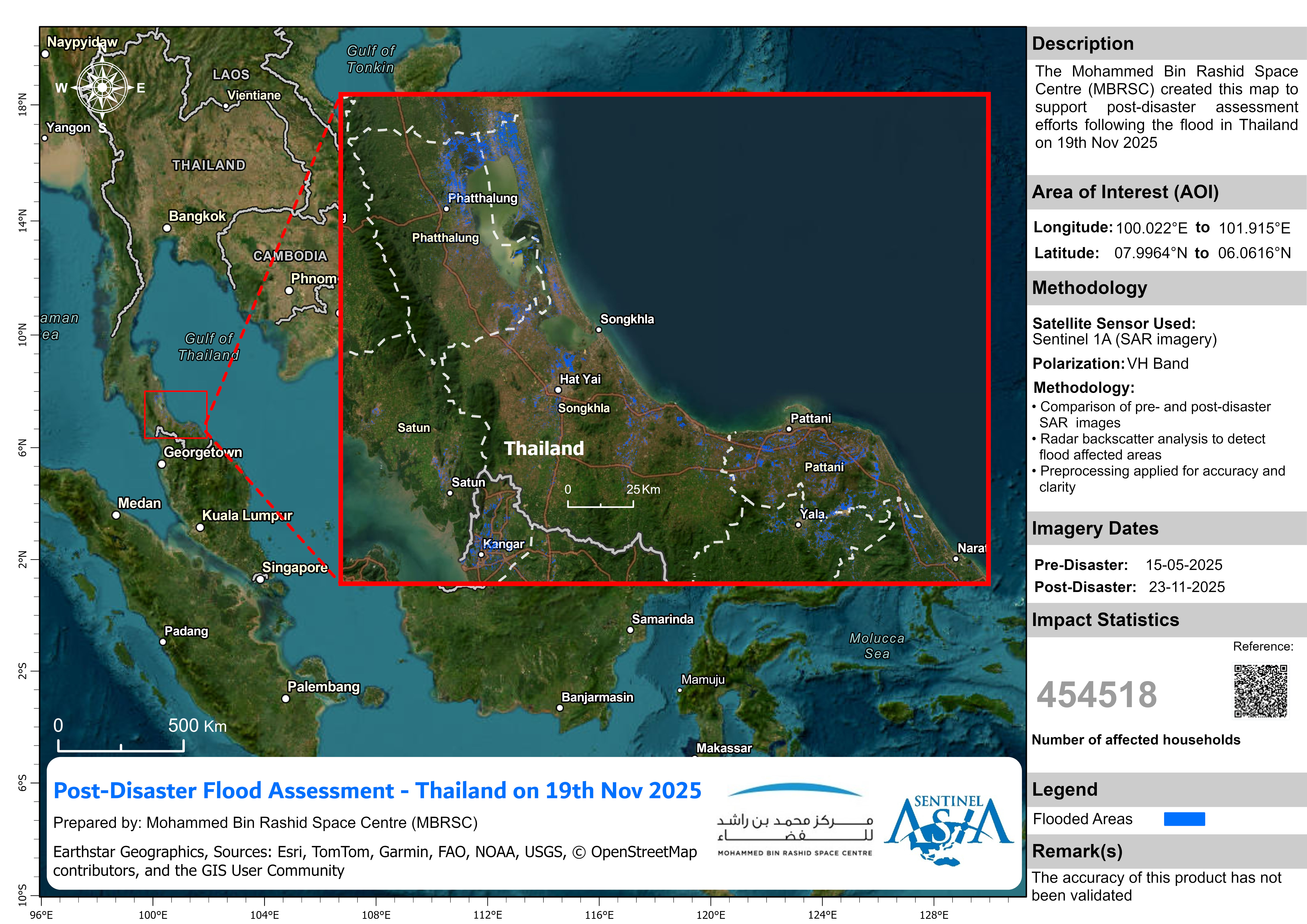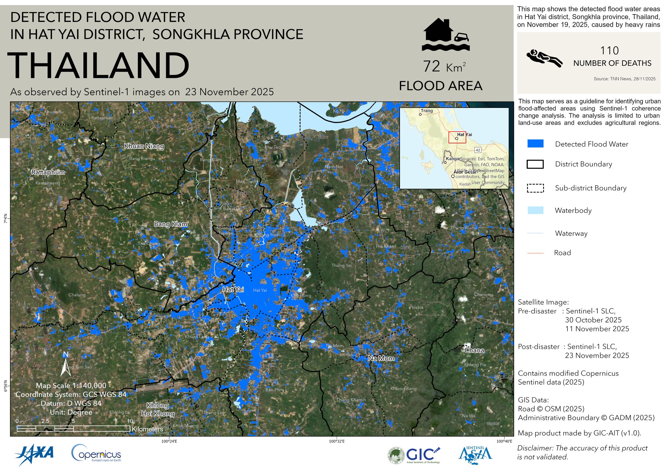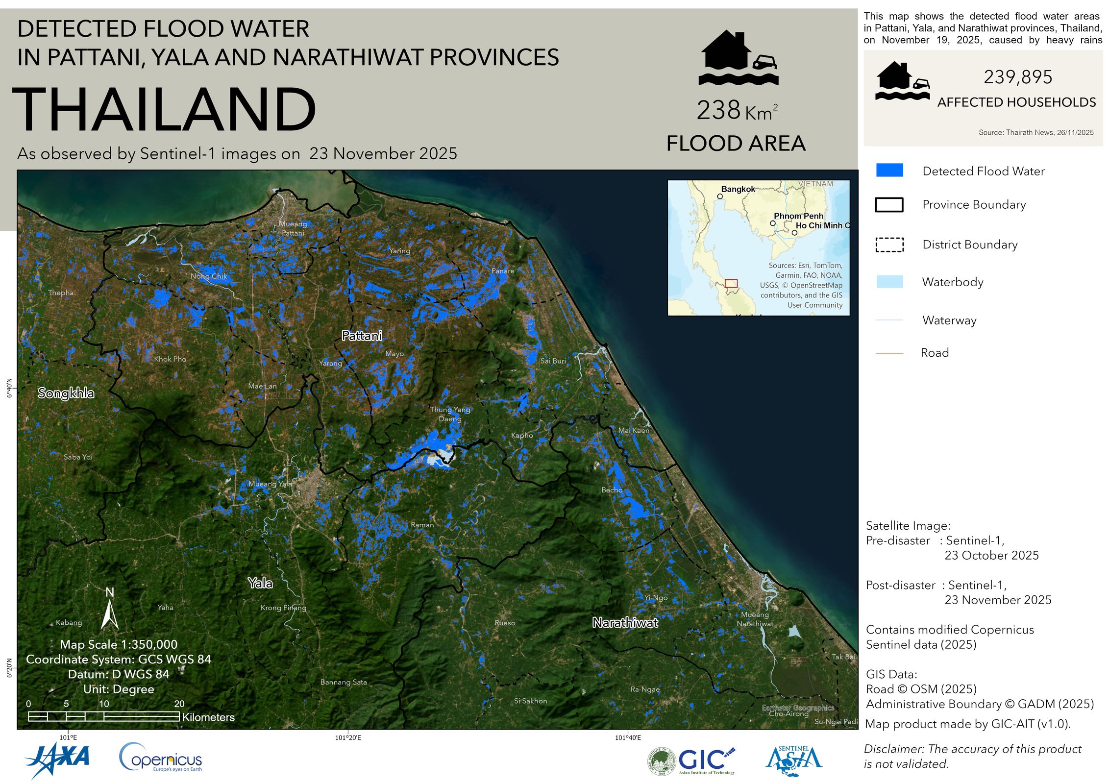 Post-Disaster Flood Assessment - Thailand As Observed by Sentinel-1 images on 23 November 2025